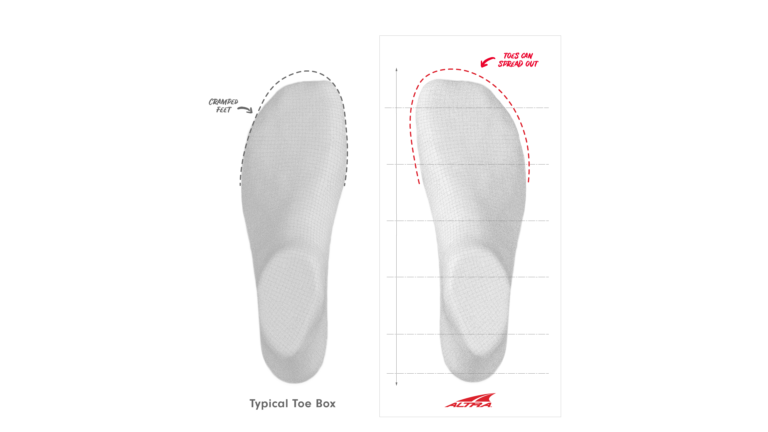 Klingt einfach und überzeugen, allerdings widersprach diese Überzeugung erstaunlicherweise allem, wofür die Laufbranche zu jener Zeit stand. Was sich als Glücksfall für Altra entpuppte, die mit ihrer geräumigen Zehenbox in eine Marktlücke stießen, die bislang nicht bedient worden war.